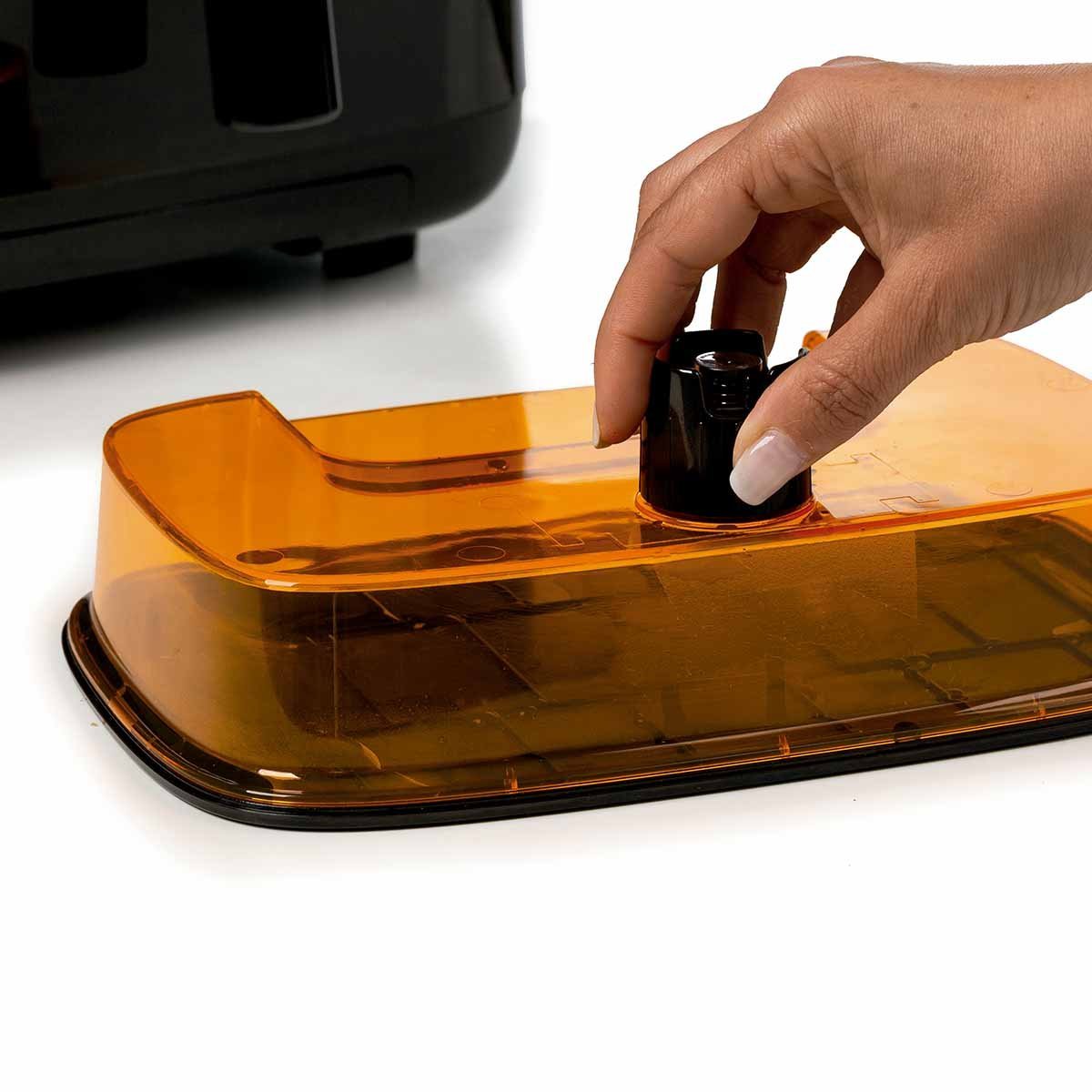 A Fritadeira Air Fryer possui um temporizador ajustável, um visor touchscreen simples e intuitivo para facilitar os ajustes e uma luz interna que permite monitorar o cozimento graças à cesta transparente. Com um reservatório de água de 1,55L, esta fritadeira gera vapor durante o cozimento por até 90 minutos, mantendo os alimentos suculentos e nutritivos. Para uma limpeza eficaz, a Fritadeira Air Fryer conta com função de autolimpeza e esterilização.