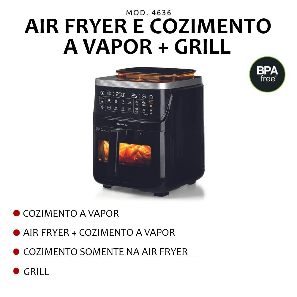 4 em 1: Air fryer, função vapor, air fryer + vapor, grill