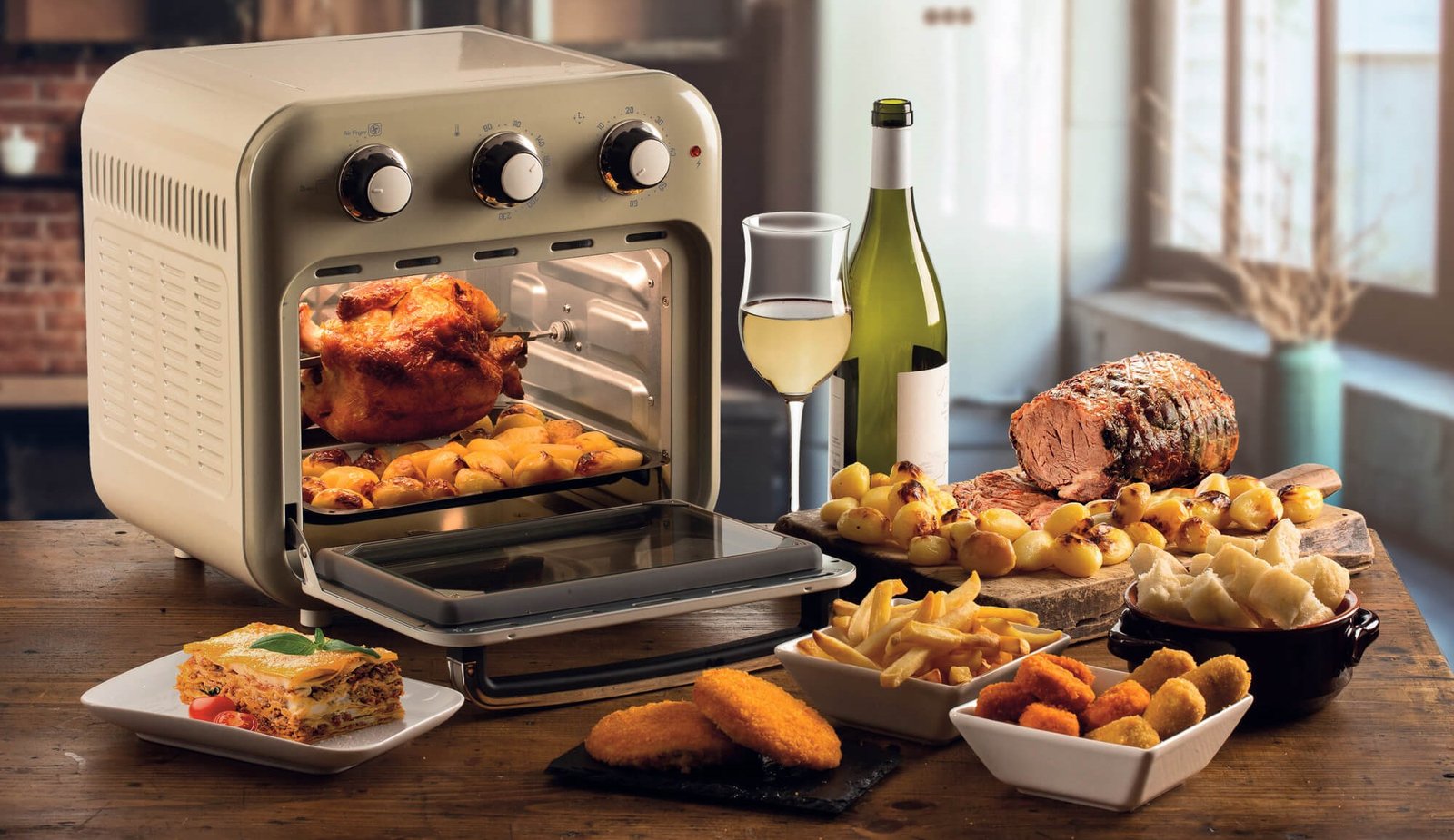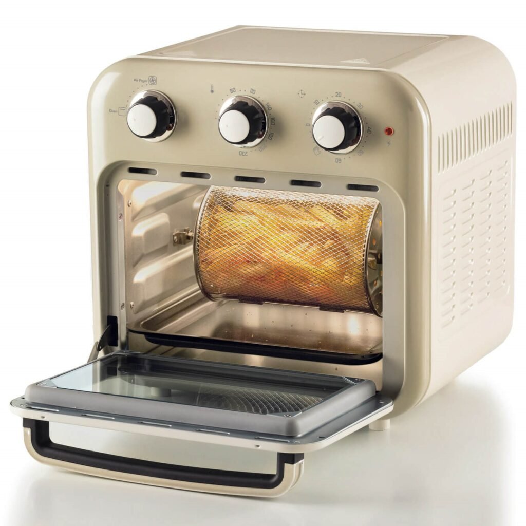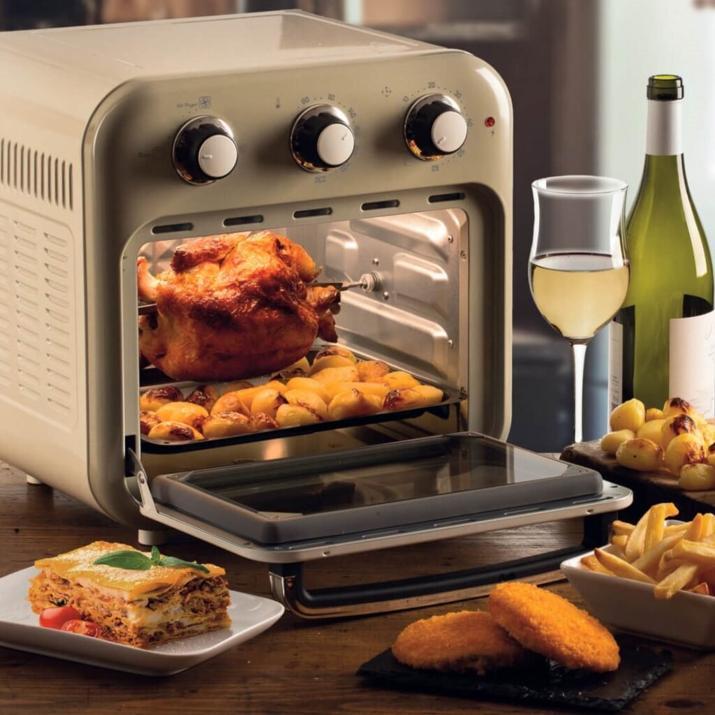 Se você quer batatas fritas leves, a Air Fryer Oven Vintage é essencial. Você obterá toda a crocância das batatas fritas em óleo, tanto na versão chips, cortando fatias finas de batatas frescas, quanto na versão palito.