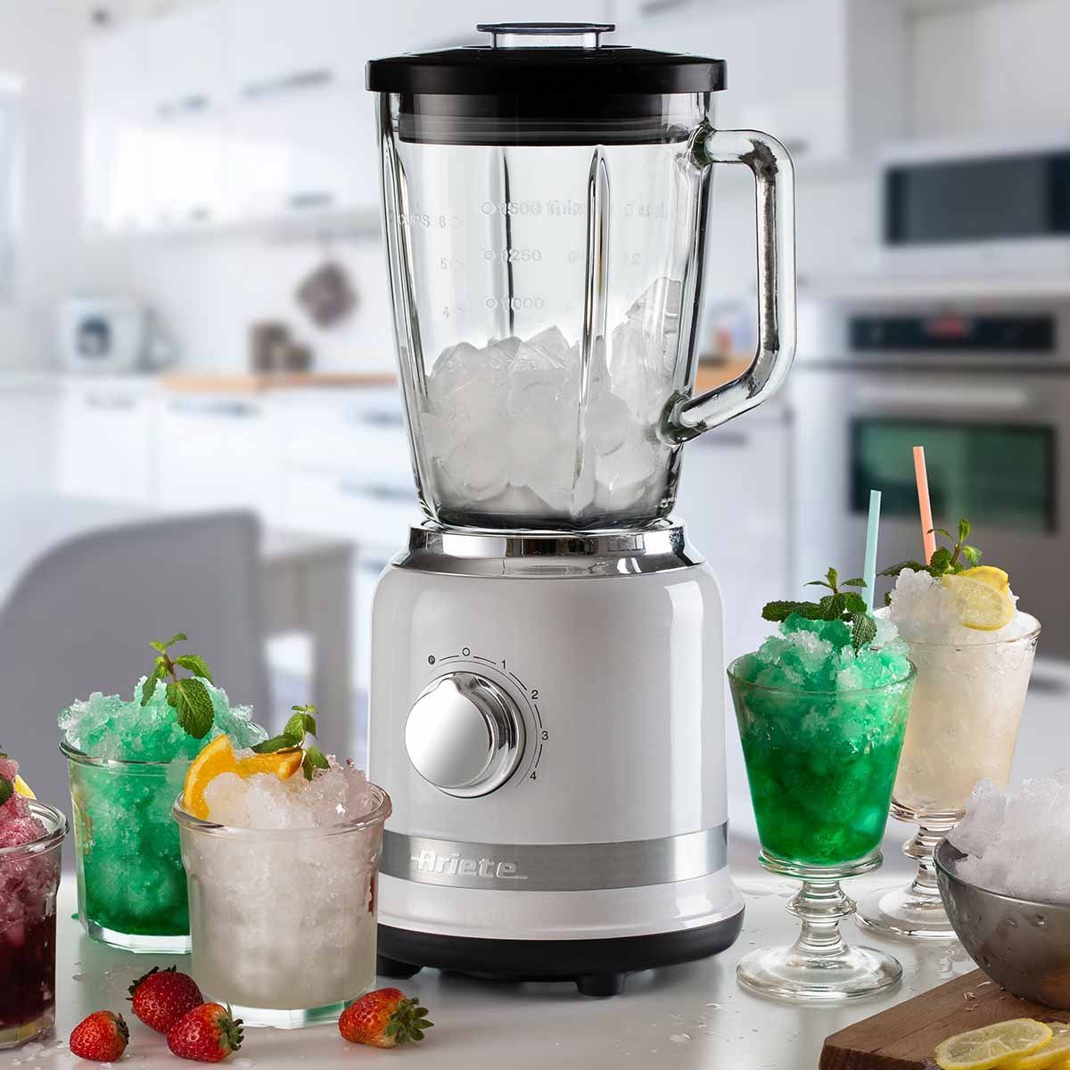 Graças às 4 potentes lâminas de aço inoxidável, o liquidificador Moderna também tritura gelo para preparar bebidas frescas e refrescantes.