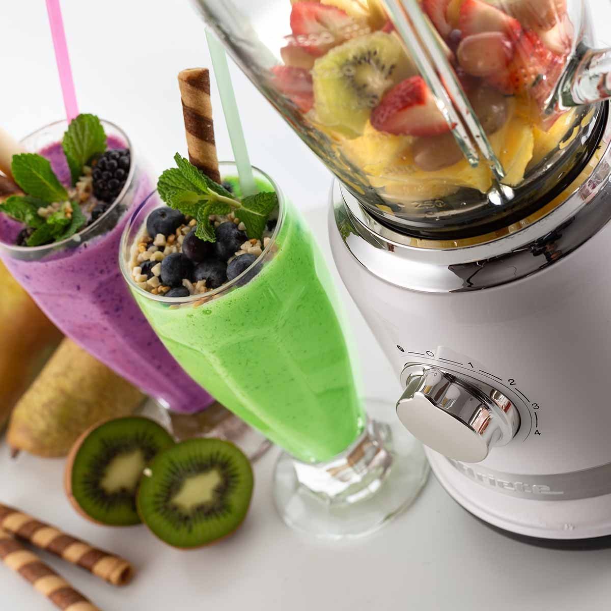 Colorido, cremoso e saboroso, feito com frutas frescas para uma bebida saudável e genuína.