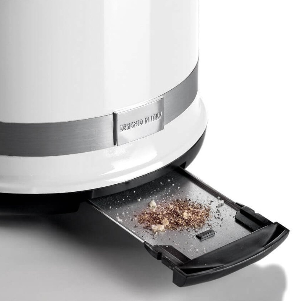 Não se preocupe com sujeira após apreciar sua torrada perfeita pela manhã. A torradeira Moderna da Ariete possui uma bandeja de migalhas removível, basta retirar e jogar as migalhas fora.